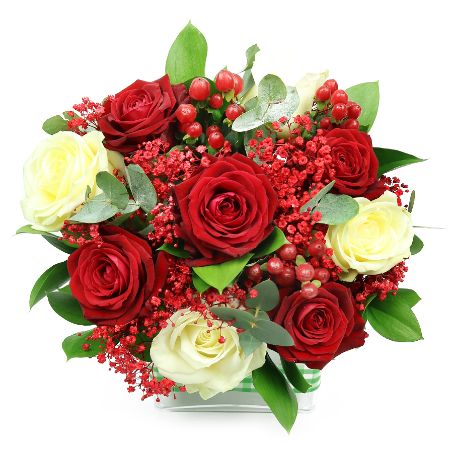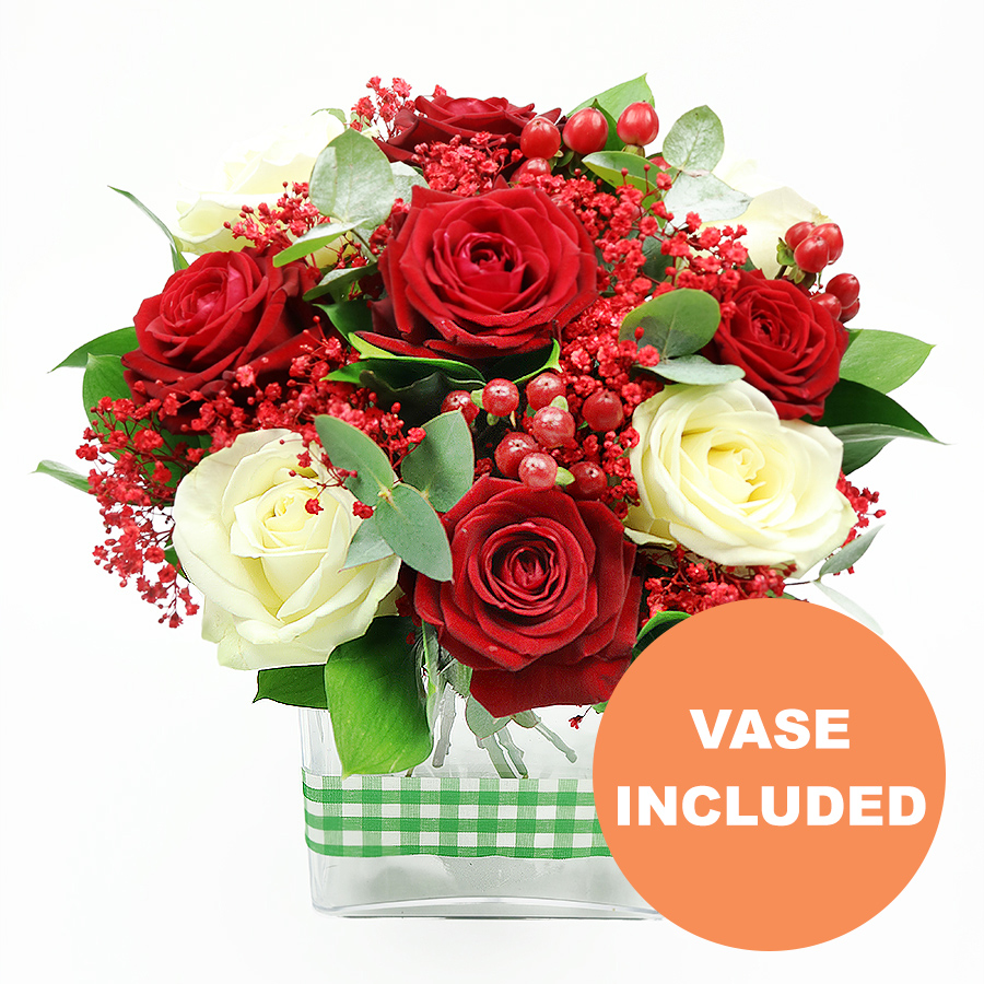 Show your passion with our passionate Valentine's bouquet. This elegant mix of red and white roses is perfect for expressing deep love and affection.
